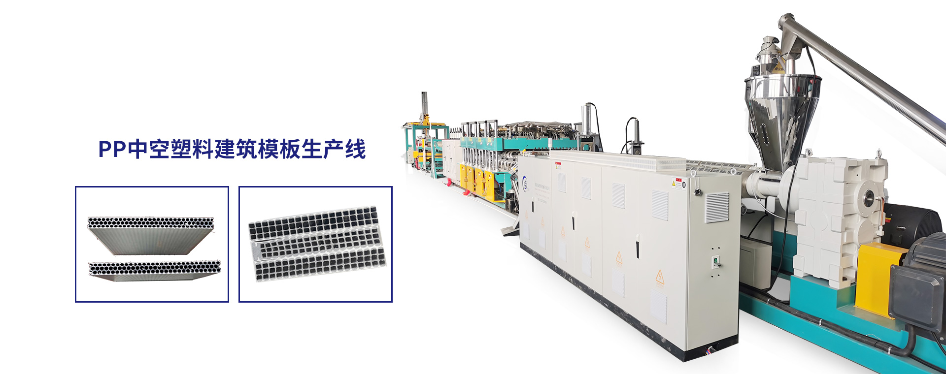 中空模板生產(chǎn)線(xiàn)/中空板設(shè)備由自動(dòng)上料進(jìn)入高速混料、再自動(dòng)上料到雙螺桿擠出機(jī)、由大板模具結(jié)構(gòu)出料進(jìn)行四節(jié)定型模定型、排輥托冷裝置、裁邊裝置、牽引機(jī)、自動(dòng)切割機(jī)、排輥輸送機(jī)等組成
